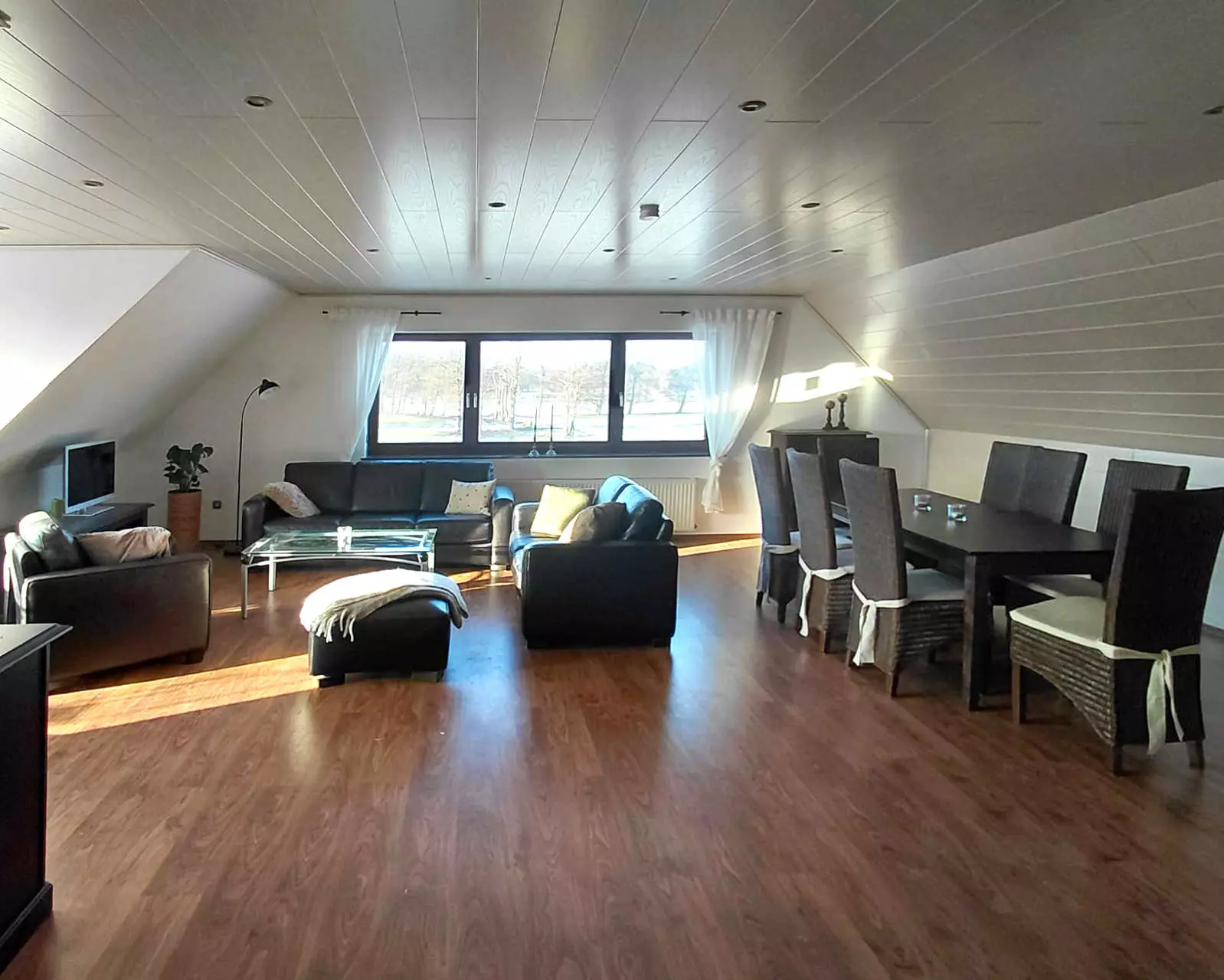 Die großzügige Obergeschosswohnung ist über eine separate Außentreppe erreichbar und bietet viel Platz für Familien und Gruppen.